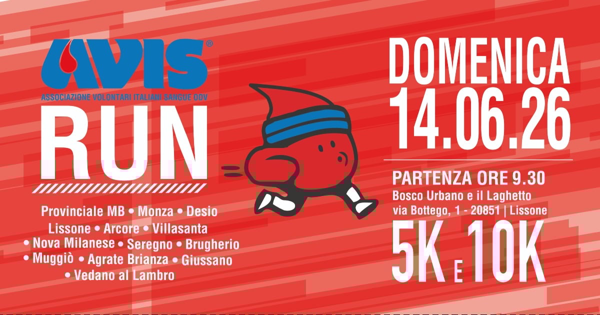 Allaccia le scarpe e corri con noi! Il 14 giugno alle 9:30, AVIS  ti invita a partecipare alla sua corsa di 5 o 10 KM a passo libero con partenza dal Laghetto di Lissone. Non mancare!